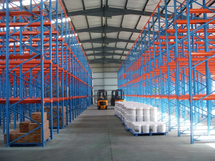 贯通式货架又称通廊式货架或驶入式货架。贯通式货架采用托盘存取模式,适用于品种少,批量大类型的货物储存。贯通式货架除了靠近通道的货位,由于叉车需要进入货架内部存取货物,通常单面取货建议不超过7个货位深度。为提高叉车运行速度,可根据实际需要选择配置导向轨道,与货位式货架相比,贯通式货架(驶入式货架)的库空间利用率可提高30%以上,贯通式货架(驶入式货架)广泛应用于冷库及食品、烟草行